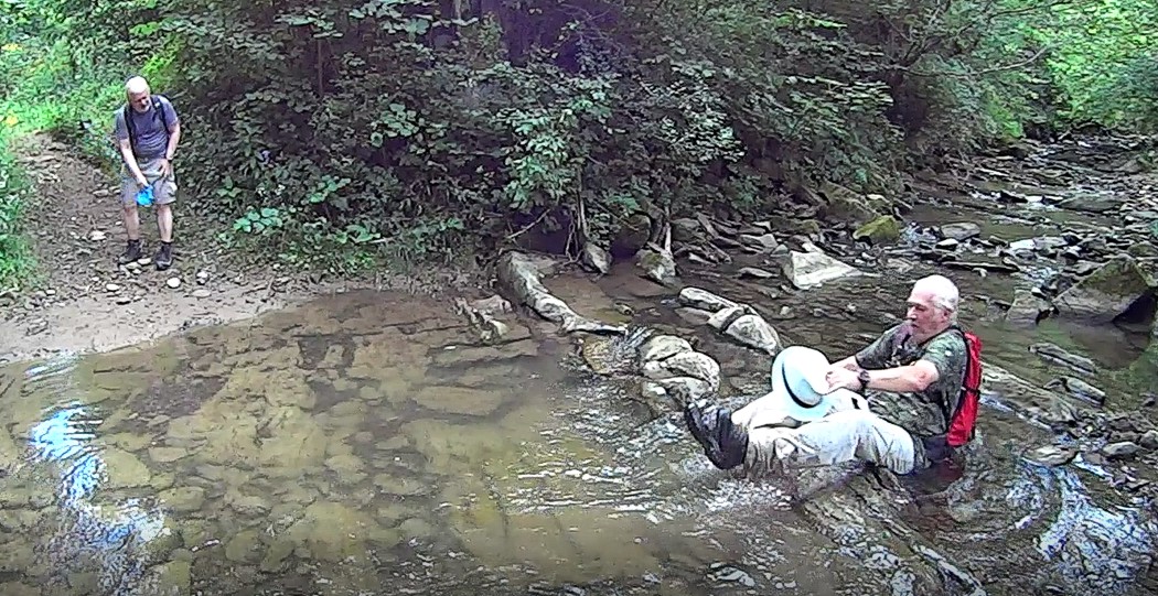 Co do Doliny Sanu. Końcówkę trasy planowaliśmy inaczej - z ominięciem siedlisk, za to z wędrówką Sanem. Jednak już przy cerkwi w Krywem stosunkiem głosów 2:1 zmieniliśmy plany. Upał co prawda był niemiłosierny, więc wędrówka rzeką trochę by nam ulżyła, ale jeżeli o mnie chodzi zagłosowałem za najłatwiejszym wariantem, ponieważ nawet bez wędrówki Sanu byłem ... wystarczająco ochłodzony