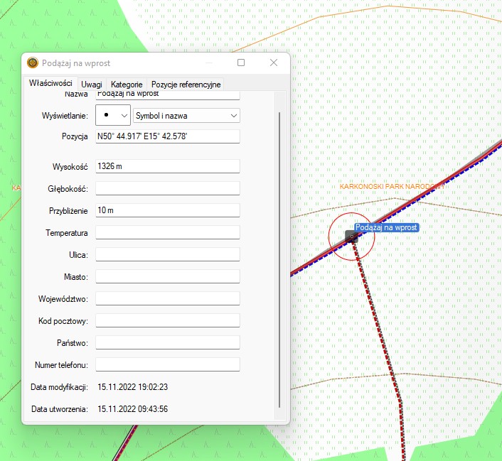 nazwy przypisane automatycznie, na " podążaj na wprost "', " skręć w prawo lub lewo ". Dodatkowo w informacjach dotyczących waypointu
