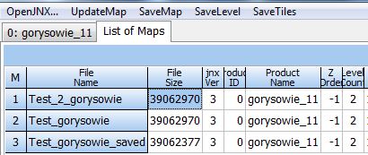 Po zapisaniu zmian poleceniem SaveMap tworzony jest nowy plik w tym samym katalogu co oryginał i posiada nazwę pliku oryginalnego z dodanym sufiksem _saved. W takiej sytuacji powinna zmienić się także nazwa pliku na górnej belce programu i w tabelce List of Maps a sama tabelka - automatycznie odświeżona.