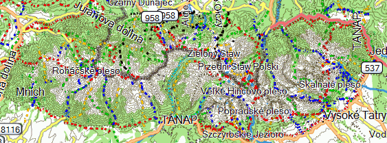 JNX słynnych tatrzańskich 10-tek. Mapa jest jednowarstwowa i zgłasza się przy zoom=80m