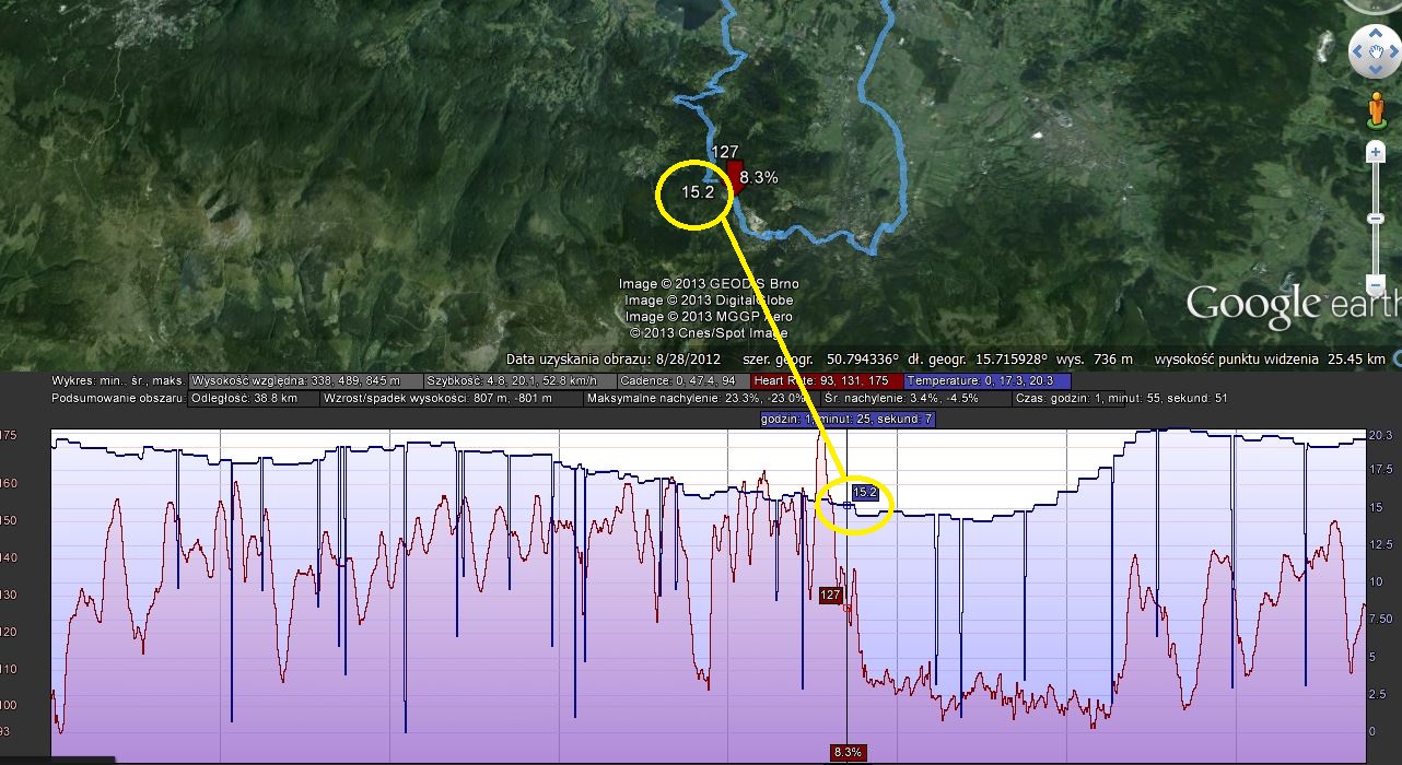 Z tego zapisu temperaturę odczytasz w Google Earth.