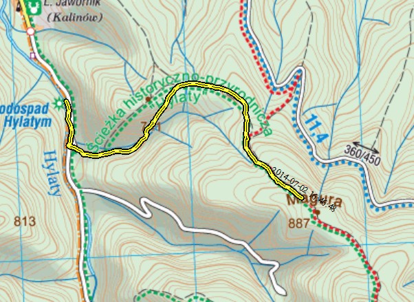Przy okazji jeszcze jedna sprawa. Kiedyś już pisałem o tym, ale ponieważ nie szedłem szlakiem lecz leśną drogą, nie mogłem podesłać GPXa. Jesienią zrobiłem trasę zgodnie z oznakowaniami na drzewach, ale ... zapomniałem się podzielić GPXem Nadrabiam zaległości. Znów: Jak dla mnie, błąd pomijalny, ale poprawić można, zwłaszcza że szlak w przeciwieństwie do skrótu leśną drogą prowadzi pod dość ciekawymi wychodniami skalnymi.