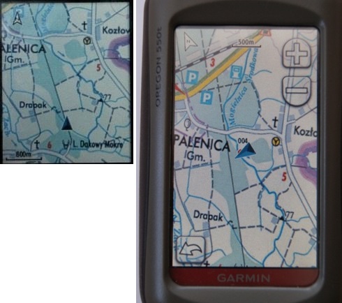 * w eTrexie ja tych różnic nie widzę, ani pod względem ostrości ani kolorystyki,