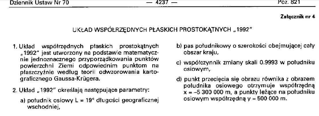 Ponieważ jednak znam Edwarda i wiem, że nie popełniłby głupiego błędu - sprawdziłem stosowne Rozporządzenie Rady Ministrów i wychodzi na to, że powinieniem częściej zerkać do podręczników geodezji, a mniej patrzeć na definicje matematyczne. Faktycznie w PUWG oś Y jest pozioma, a X pionowa